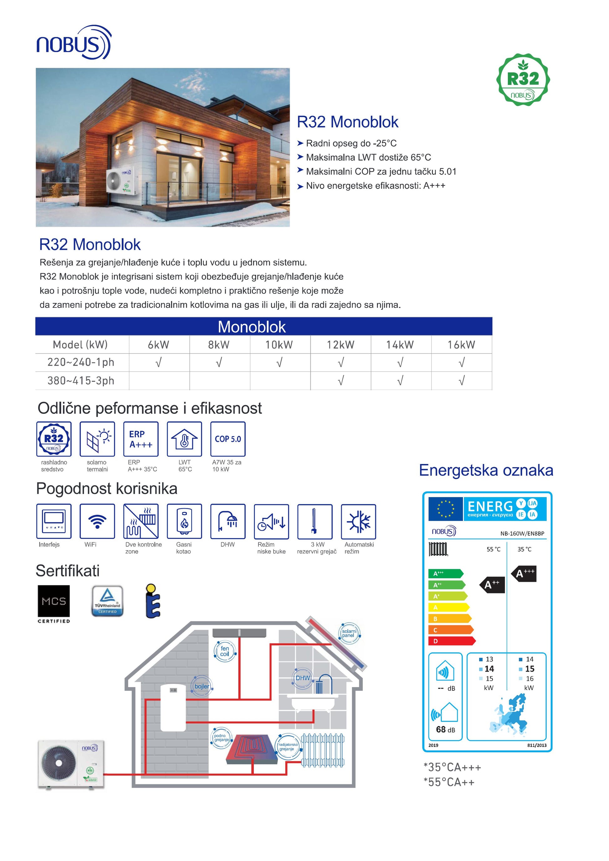 Nobus MONOBLOK trofazna toplotna pumpa snage 12 kW predstavlja idealno rešenje za Vaše hlađenje i grejanje objekta. Ovaj visokokvalitetni uređaj idealan je za stambene i manje komercijalne objekte, pružajući maksimalnu energetsku efikasnost uz minimalnu potrošnju energije.