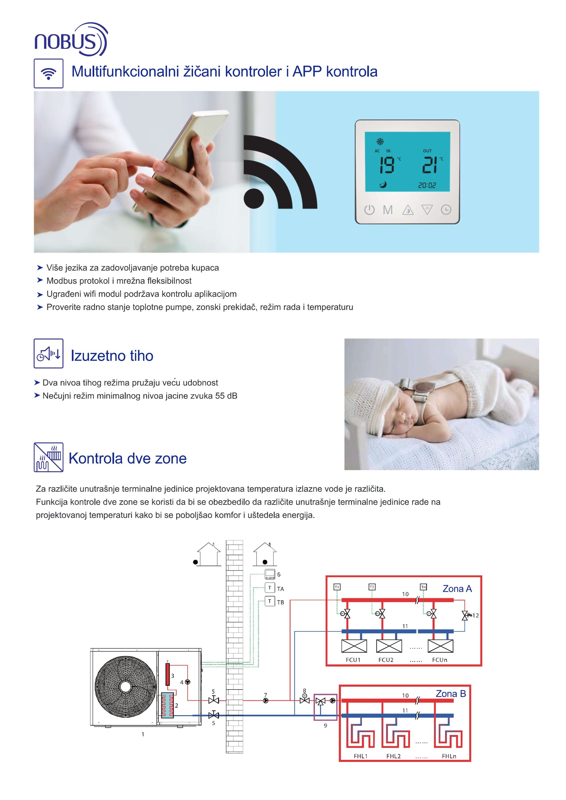 - Visoka energetska efikasnost: Uz inverter tehnologiju, pumpa prilagođava radnu snagu trenutnim potrebama, osiguravajući nisku potrošnju energije i smanjenje računa za grejanje.